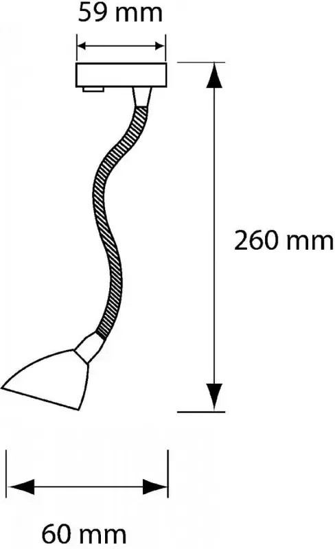 Lámpara G4 10 W. Altura máxima 260 mm, base Ø 59 mm.