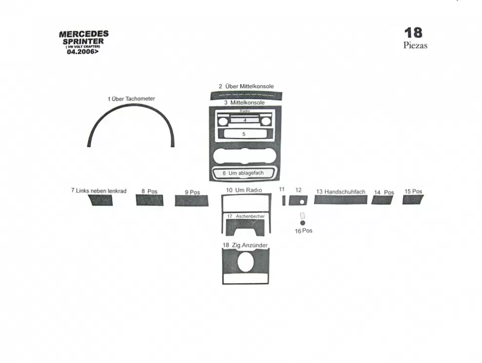 Kit decorativo efecto madera 18piezas para Mercedes Sprinter y VW Crafter de año 2006 en adelante.