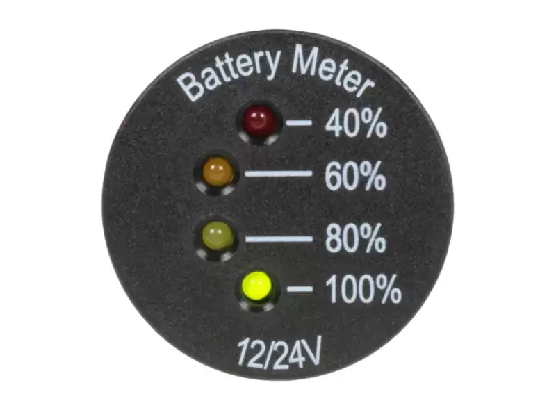 Voltímetro medidor en 40%, 60%, 80% y 100% de baterias para caravanas, autocaravanas, camper y 4x4 overland.