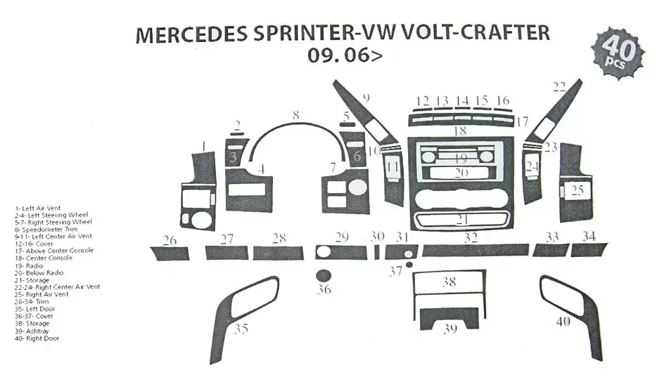 Kit dec. salpicadero Mercedes sprinter , VW Crafter 04.06>40pzs - Ref. CRU303