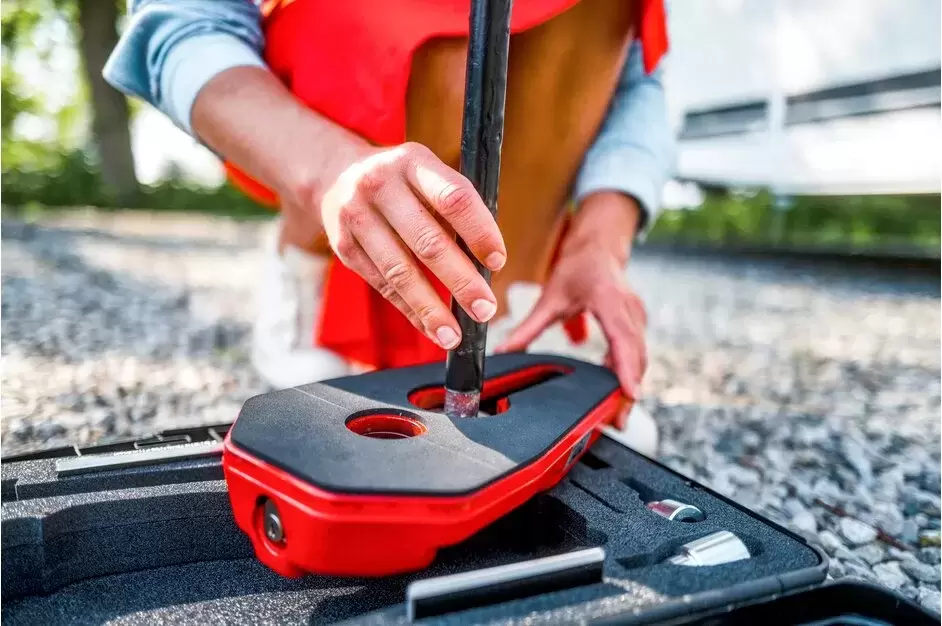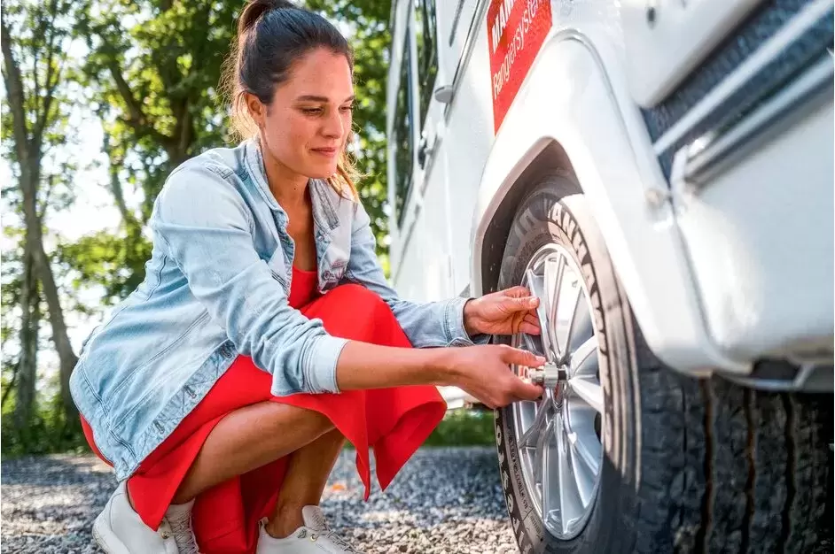 Para la instalación inicial, atornille un perno de rueda especial en un orificio de la llanta y ajuste la distancia con el perno de ajuste incluido. Después, simplemente deslice la barra de bloqueo a través de la llanta, inserte la abrazadera de rueda y bloquee la cerradura de cilindro: su caravana estará bien protegida.