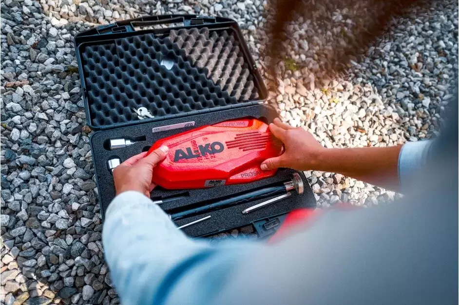 Puede instalar la abrazadera para ruedas AL-KO PROSAFE usted mismo en tan solo unos pasos. Gracias a su protección antirrayas y a prueba de contacto, la llanta permanece intacta durante la instalación. Y cuando no necesite protección antirrobo, la abrazadera puede guardarse en su resistente estuche con prácticas características.