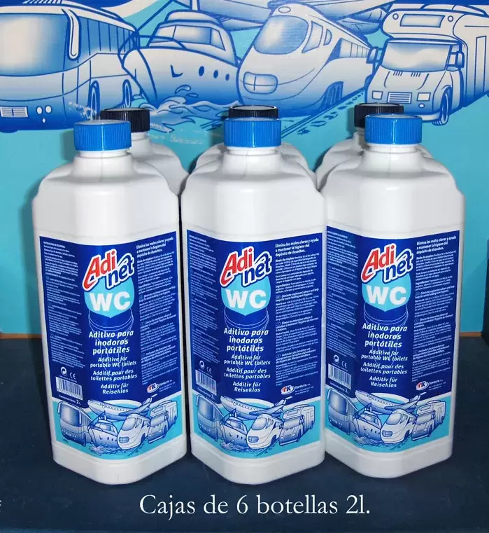 Adinet wc inodoros es un potente higienizante para el depósito de desechos de los inodoros portátiles.Aporta un aroma agradable,eliminando los malos olores y evitando la formación de gases . Interviene de forma activa en la descomposición de la materia fecal y del papel higienico.