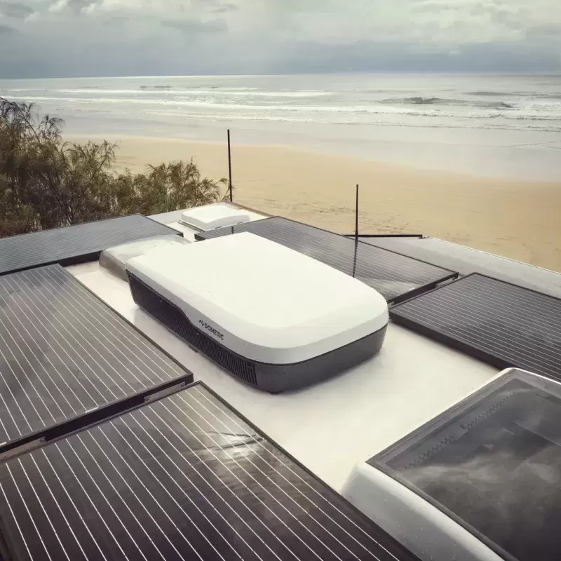 Este aire acondicionado de techo de 3500 W es uno de los más frescos que hemos fabricado. Su elegante unidad de techo con una exclusiva línea curva de luces LED será el centro de todas las miradas. Equipado con la última tecnología de bomba de calor y compresor inverter de velocidad regulable, enfría su vehículo de manera más rápida, más silenciosa y más eficiente que cualquier otro aire acondicionado para vehículos de recreo. Y también puede calentarlo, si es necesario.