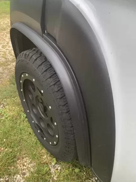 Los guardabarros están pegados dentro del paso de rueda, debajo del borde de la carrocería.
