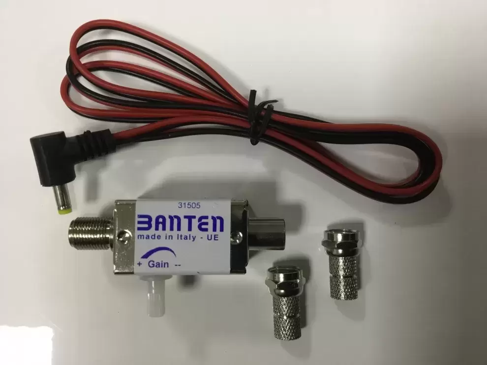 Amplificador mini antena Banten 6-12V DVB con Trimmer camper autocaravana y regulador de ganancia.