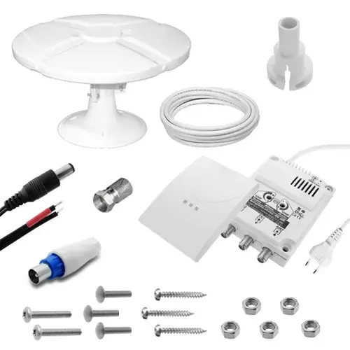 Antena omnidireccional y mástil TONNA 263590 con amplificador 40db para caravanas, autocaravanas y camper.