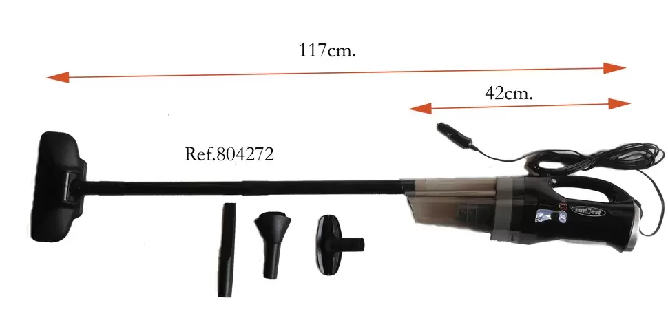 Aspiradora 12v compacta con varios ascesorios que nos permitiran utilizarla incluso estando depie para aspirar el suelo de nuestro vehiculo.