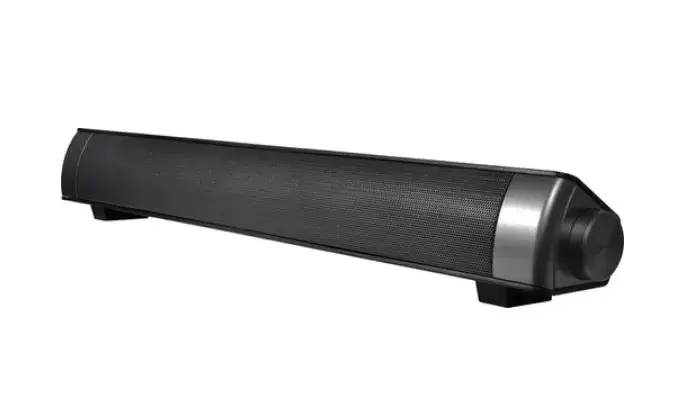 La barra de sonido se alimenta a través del puerto USB del televisor y las señales de audio se transmiten a través del conector para auriculares. Se fija a la parte inferior del televisor mediante el soporte incluido.