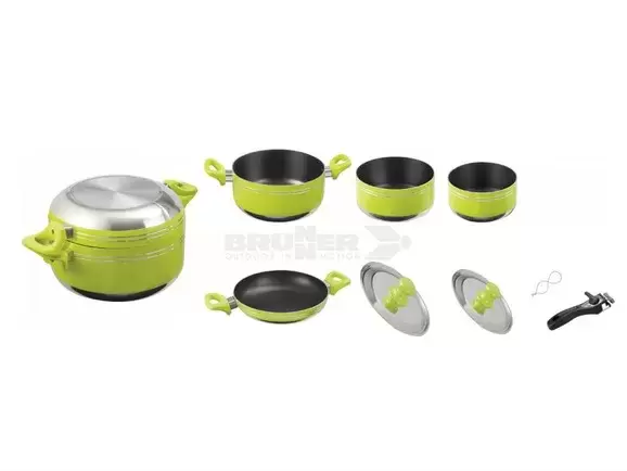 El conjunto de cocina de aluminio Brunner Juniper 7 + 1 es higiénico, confiable, resistente a la corrosión, insensible a los choques de temperatura y fácil de limpiar.