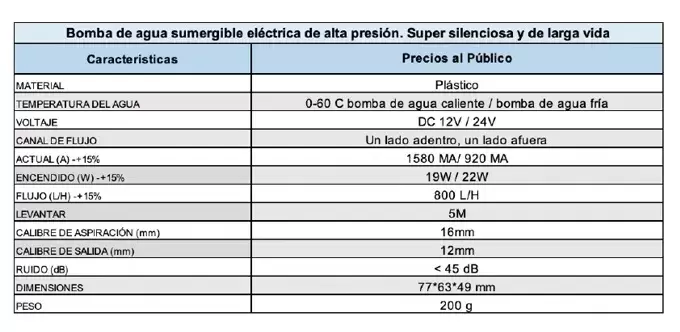 Bomba de agua silenciosa inferior 12V para climatizador Neil.