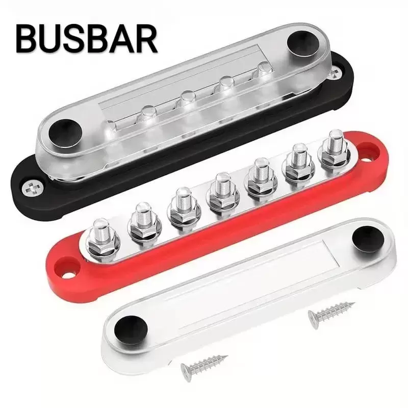 Busbar barras de alimentación 150AH M6 7 tornillos conjunto ROJO + NEGRO, para caravanas, autocaravanas, camper y 4x4 overland.