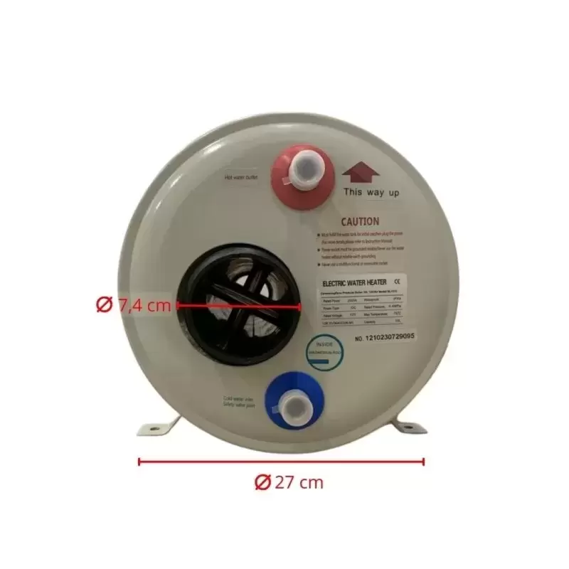 Calentador Boiler de agua caliente 6 litros a 12V/200W + AIRE para caravanas, autocaravanas, camper y 4x4 overland.