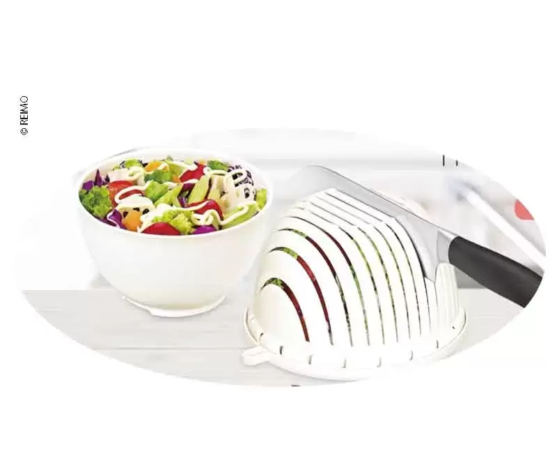 Camp4 ensaladera, escurridor y cortador 3 en 1 para caravanas, autocaravanas y camper.