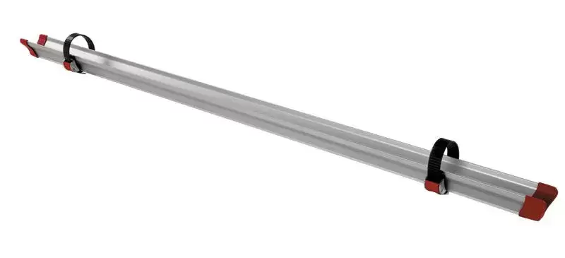 Carril de aluminio para portabicicletas con correas de plastico de sujección de ruedas, que se desplazan con guias y tornillos de fijación al portabicicletas incluidos.