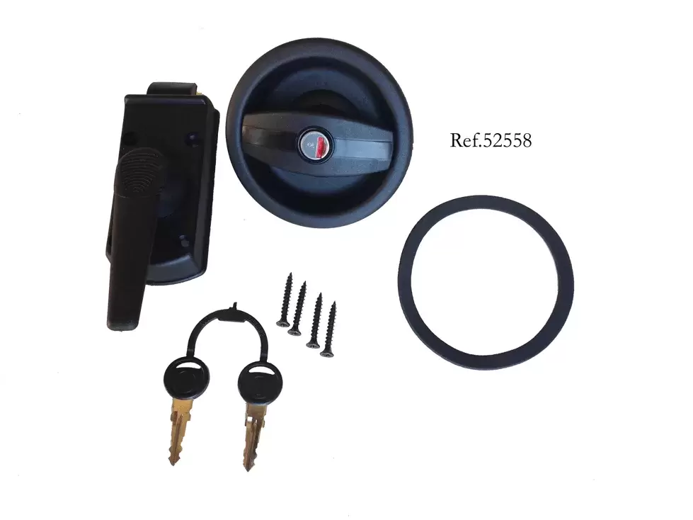 Cerradura redonda de color negro para arcon o puerta de caravana ó autocaravana.