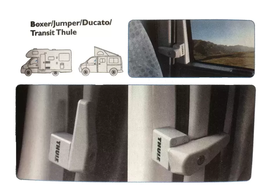 Cierre de seguridad con llave marca Thule para el interior de las puertas de la cabina, también conocidos en el mundo del caravaning como Fermines.