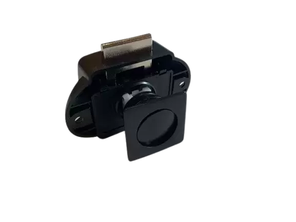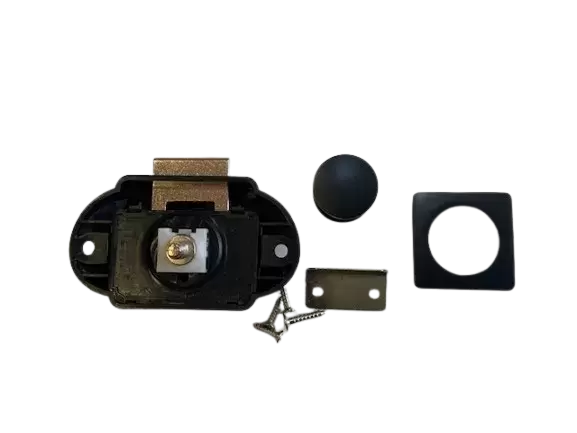 Cierre para puertas con contorno del pulsador cuadrado en color negro mate para caravanas. autocaravanas y camper.