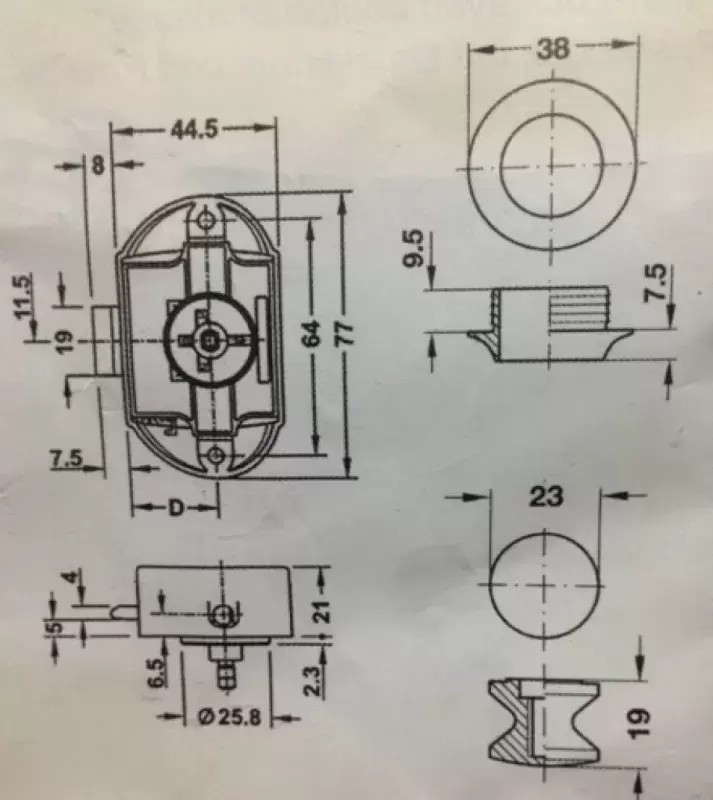 Cierre pulsador con roseta y mecanismo en color blanco y plata satinado, medidas en foto adjunta.
