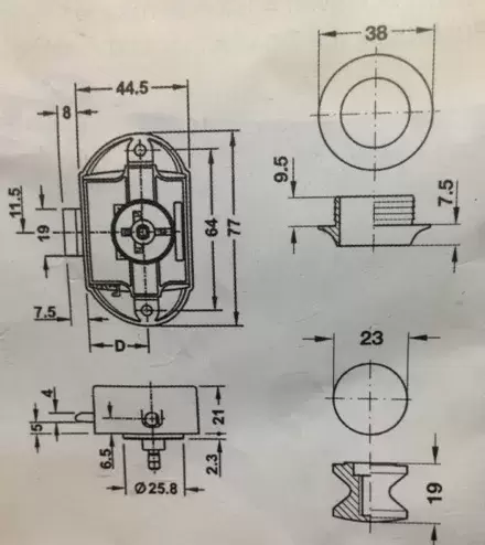 Cierre pulsador con roseta y mecanismo en color blanco gris, medidas en foto adjunta.
