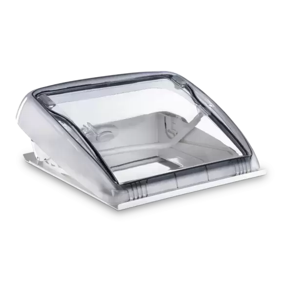 -Claraboya Dometic Mini Heki Style con cubierta transparente, cierre con multiples posiciones de apertura, plafon interior con oscurecedor y mosquitera, con goma de ajuste para evitar ruidos.