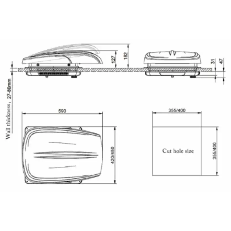 Claraboya de alta calidad con unas prestaciones sorprendentes a un precio imbatible con ventilador, entrada de aire hacia el interior del vehículo y hacia el exterior según le interese.