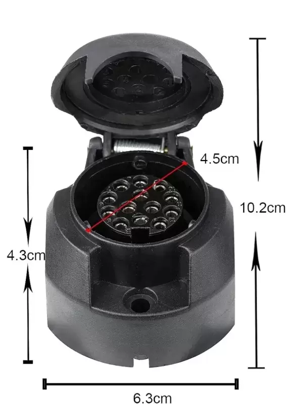 Clavija enchufe piña 13 polos PVC con goma de protección para caravanas y remolques