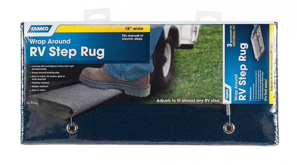 Cobertura antideslizante, resistente a la intemperie, ayuda a mantener limpia nuestra caravana o autocaravana, adaptable practicamente a todos los peldaños gracias a sus muelles de agarre incluidos.