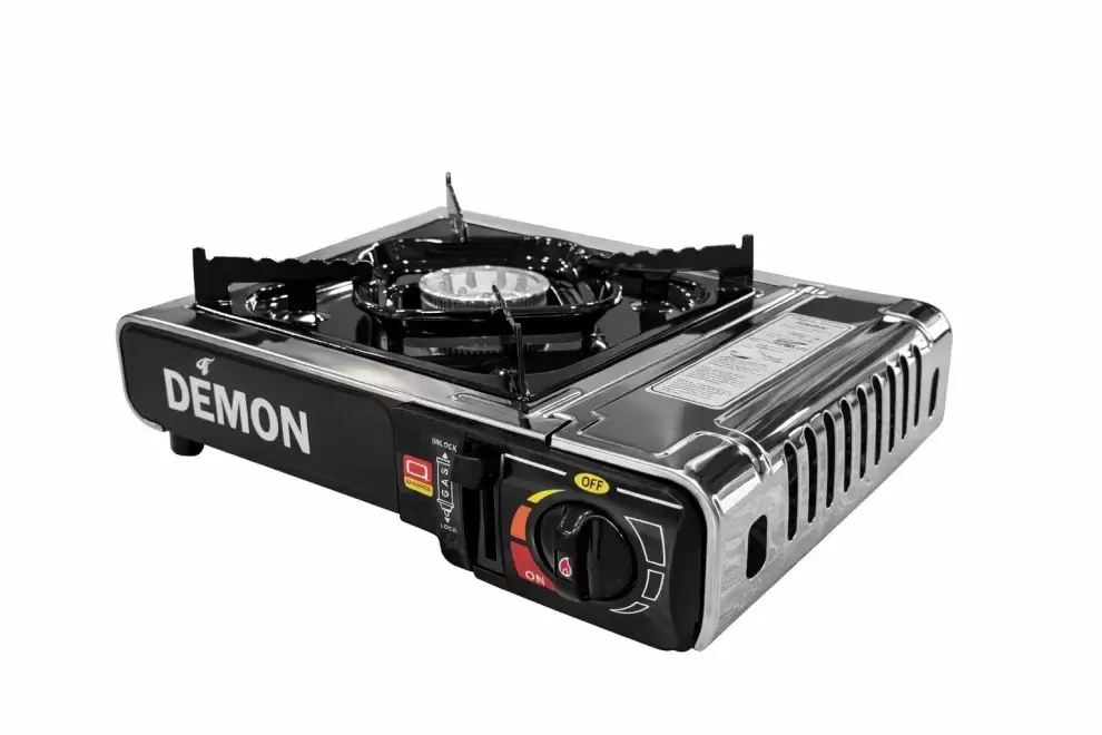 Esta útil cocina funciona con cartuchos de gas tipo B250, encendido piezoeléctrico, quemador de aluminio y flujo de gas regulable.