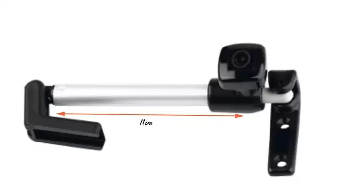 Este compas no tiene manivela de cierre, los 110 mm se miden solo el aluminio cerrado. Sin el cierre de plastico.