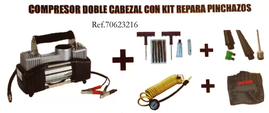 Compresor doble cabezal con kit repara pinchazos - Ref. 70623219