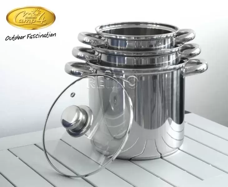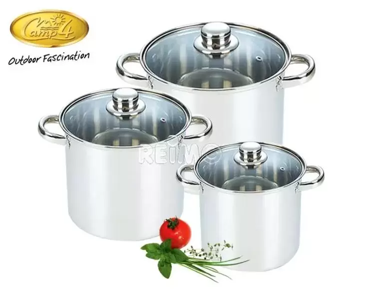 Conjunto de tres ollas diseñadas para las cocinas de encimeras de caravanas y autocaravanas.