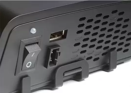 Este convertidor senoidal diseñado para convertir la alimentación eléctrica de 12 V a 230 V CA puros garantiza un funcionamiento fiable de los aparatos de baja potencia (hasta 150 W) con la batería del vehículo.