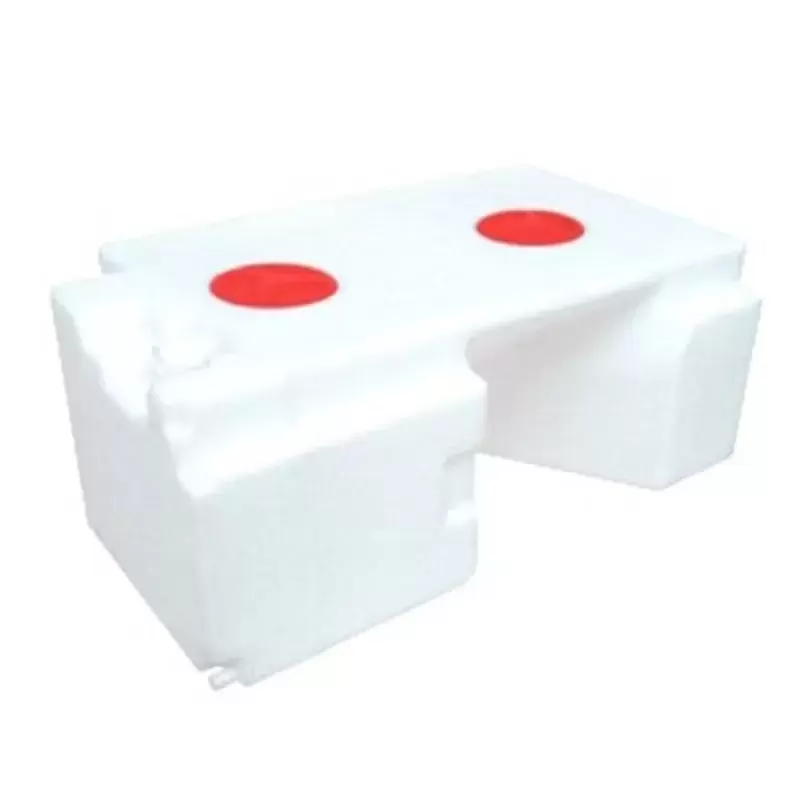 El depósito viene previsto con 2 tapones superiores de abertura con entrada superior de agua de 4 cm, otra entrada de respiradero en su parte superior de 1.5 cm y otra entrada inferior de 1.5 cm, también dispone en su parte inferior de ángulos en forma de 90º para poder pasar las tuberias de calefacción alrededor del depósito.