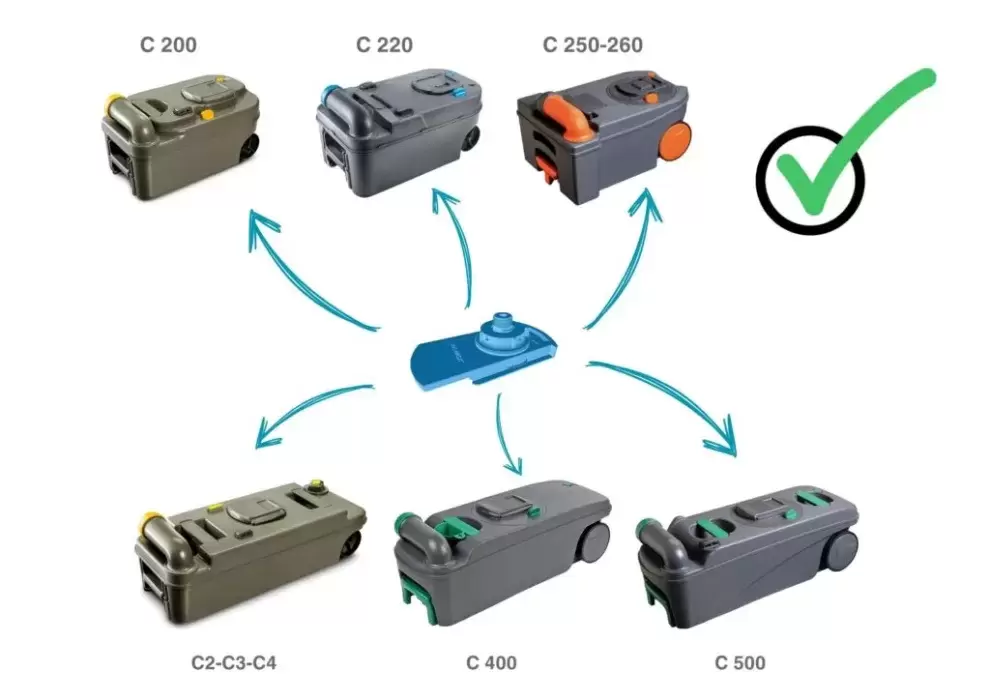 DOC-WASH® está diseñado actualmente para usarse con todos los inodoros de cassette Thetford® para autocaravanas y caravanas. Obviamente, ya estamos diseñando una versión para otras marcas y para inodoros portátiles.