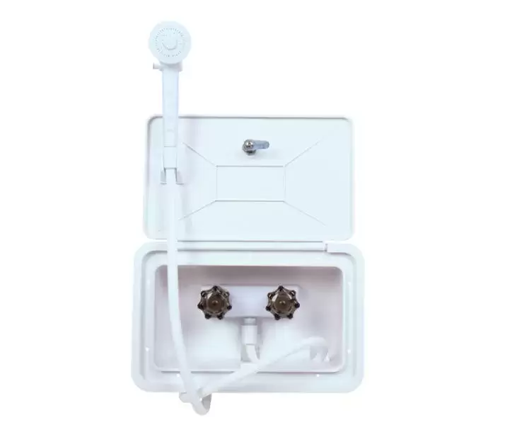 Ducha Exterior blanca agua caliente y fria con cerradura 345x220 mm para caravanas, autocaravanas y camper. - Ref. 63219