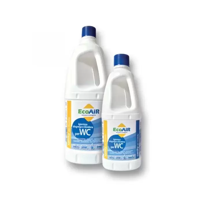 Líquido ecológico para la higiene de las aguas residuales de los WC químicos de autocaravanas, caravanas, barcos, autobuses, aviones y todas las instalaciones sanitarias, no conectadas directamente a la red de alcantarillado.