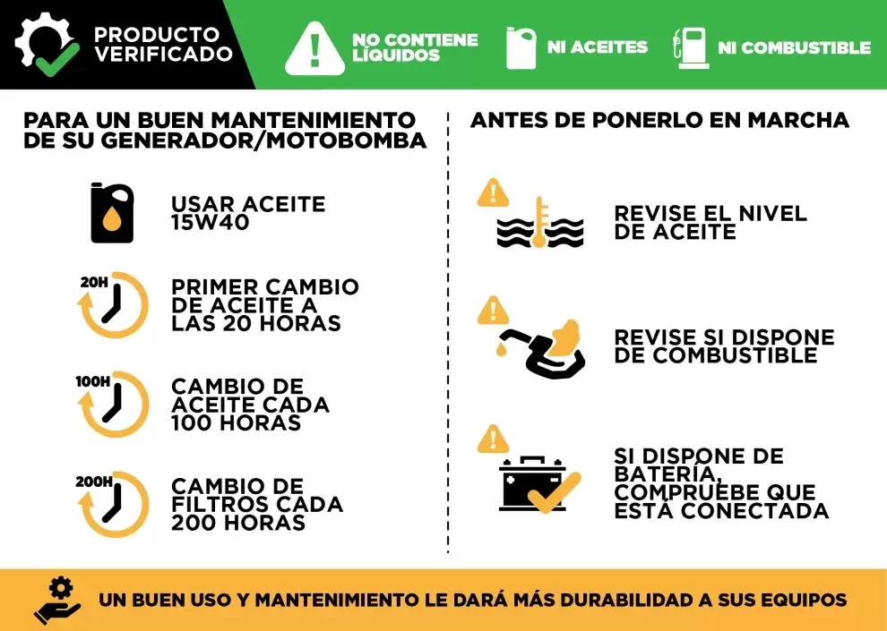 - Alerta de sobrecarga: el generador se apaga automáticamente para evitar la sobrecarga.