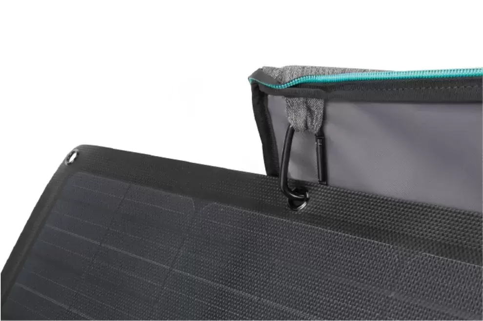 · Estuche con soporte. Brinda protección para el panel solar durante el transporte. El estuche de transporte también funciona como pie de apoyo, lo que le permite colocar la energía solar en cualquier dirección u orientación, lo que permite conectar varios paneles solares entre sí sin obstrucciones.