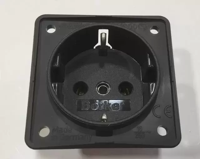 Enchufe 220V linea BERKER color NEGRO ANTRACITA para caravanas, autocaravanas y camper.