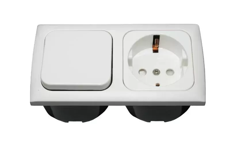 Enchufe + interruptor interior con marco BLANCO para caravanas, autocaravanas y camper.