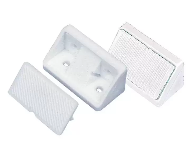 Escuadra Blanca de plastico con tapa para armado de muebles en caravanas, autocaravanas y camper.