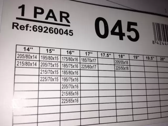 Tabla de compatibilidad de neumáticos en foto adjunta.
