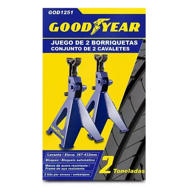 GoodYear juego de 2 borriquetas de acero 2 toneladas para caravanas, autocaravanas, camper y 4x4 overland. - Ref. GOD1251