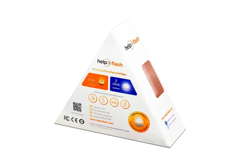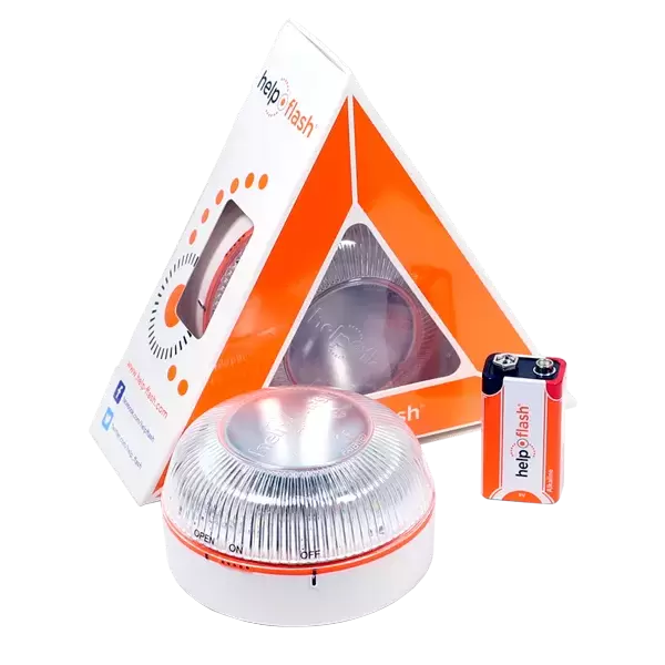 Help Flash® es una baliza de señalización de incidentes en carretera recomendada por la Dirección General de Tráfico.