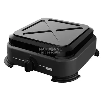 Se conecta directamente al manorreductor de la botella con ayuda de un tubo de gas flexible (no proporcionado). Gran estabilidad gracias a los pies antideslizantes. Parrila negra de acero esmaltado. Hornillo de acero esmaltado con dos fuegos con tapa basculante amovible. Caperuzas de quemador de latón con llama controlada.