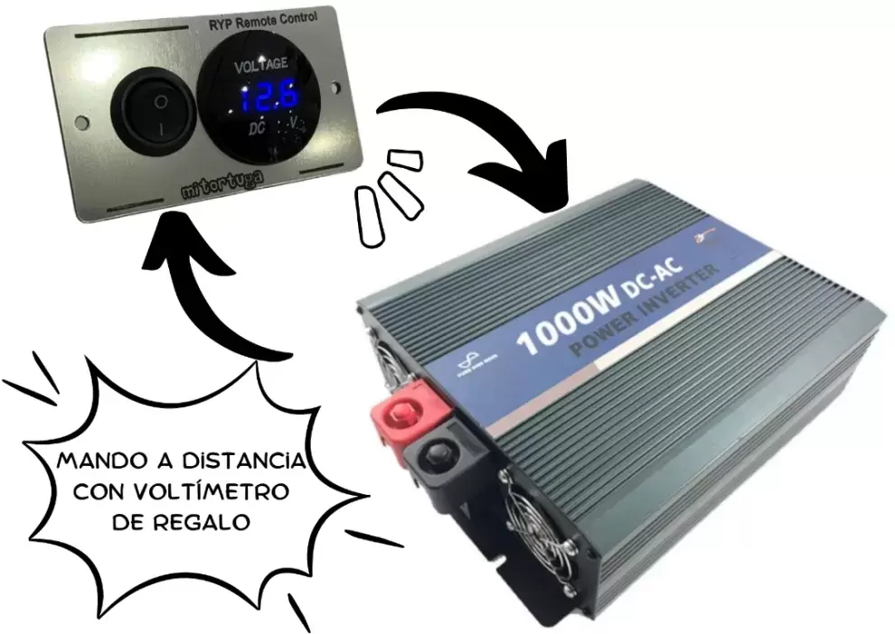 Inversor de corriente Onda Pura 1000W, 230V, 12V para caravanas, autocaravanas, camper y 4x4 overland.