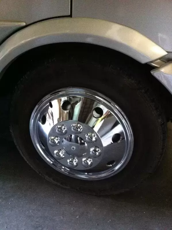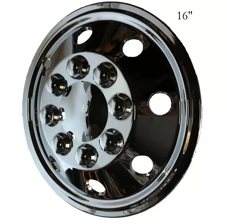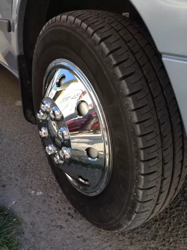 Cuatro tapacubos autocaravana para llanta de 16" con fabricación robusta de plastico y terminación cromado.