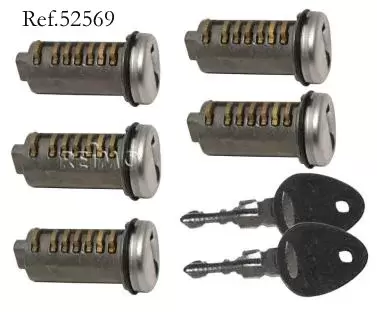 Juego de 5 bombines y 2 llaves sistema STS, para poder sustituir los bombines de las cerraduras de nuestra caravana o autocaravana.