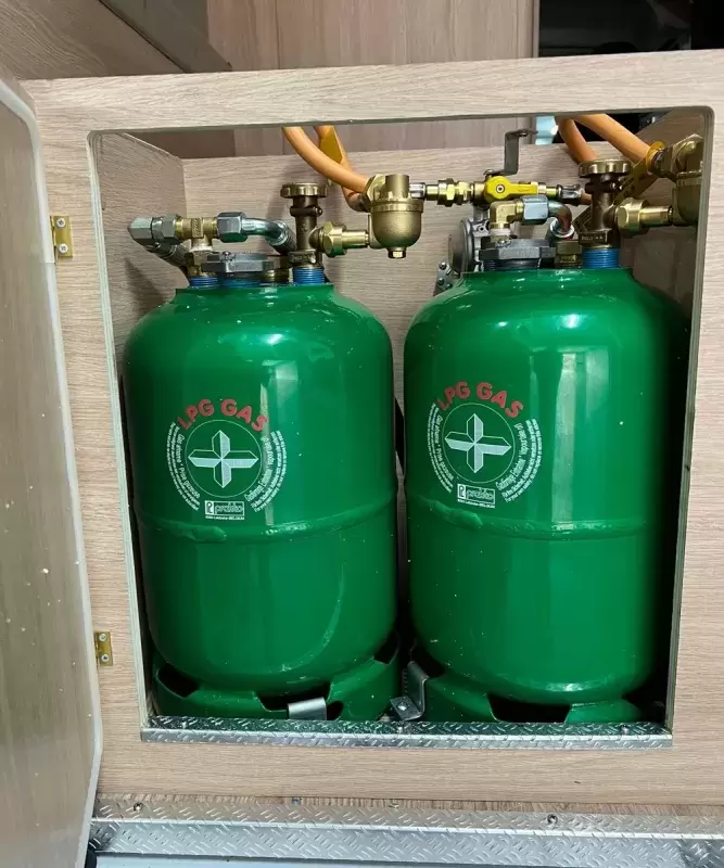 Kit 2 bombonas recargables PRAKTO para autocaravanas con toma exterior.